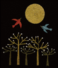 This embroidery kit from celebrated designer Alice Makabe captures a serene seasonal tableau: two birds in flight, passing beneath a golden full moon above a grove of stylized autumn trees. Makabe’s designs are known for their gentle poetry, and this small scene is no exception—simple, elegant, and deeply atmospheric.
